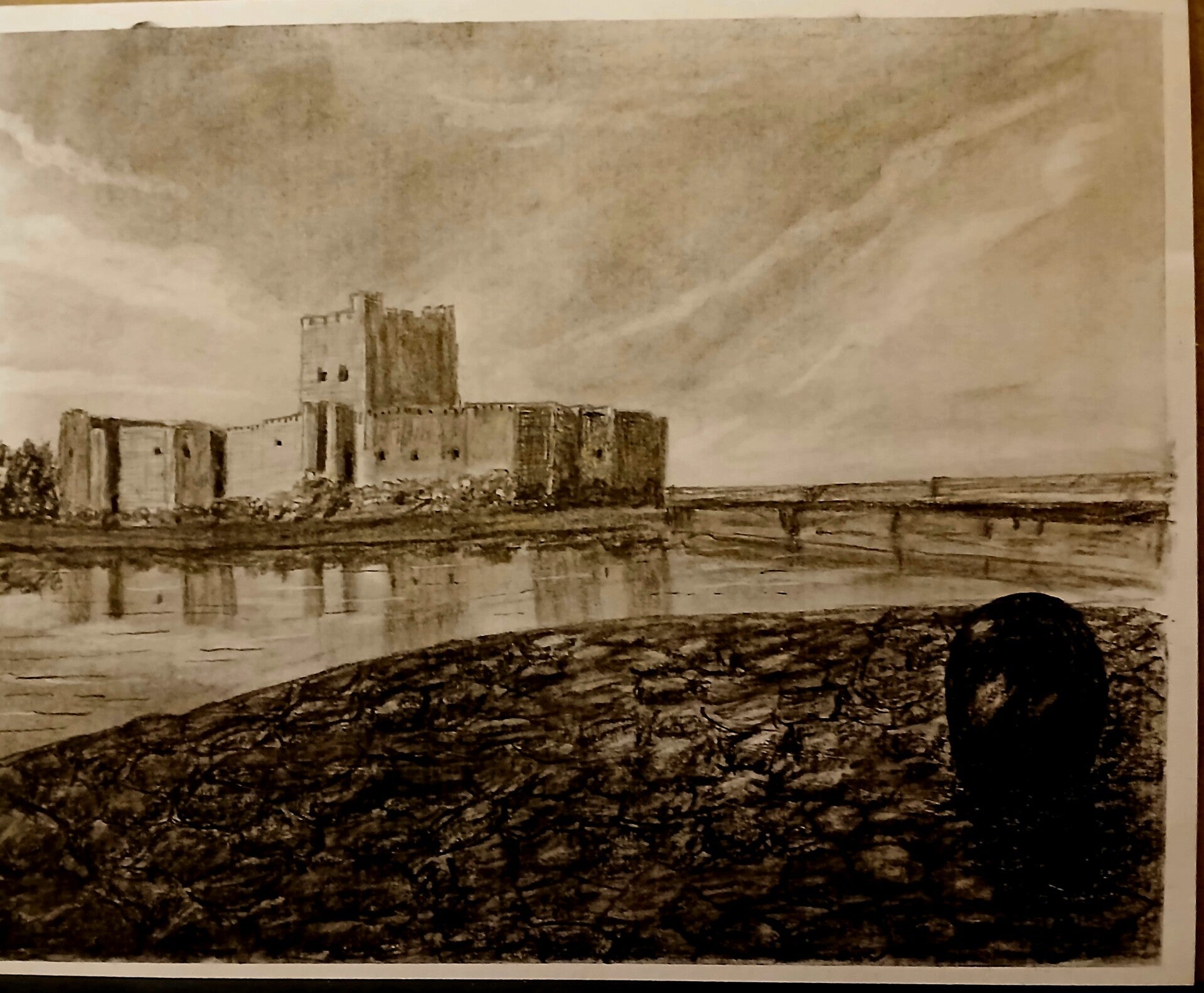 Carrick castle in charcoal